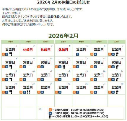 令和8年 2月休館日のお知らせ