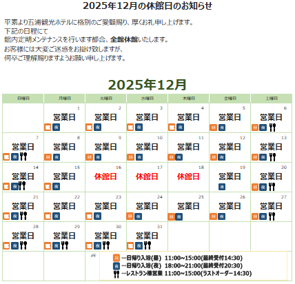 令和7年 4月16日・17日 日帰り入浴夜の部 営業休止のお知らせ